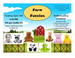 Join us for another stuffie building workshop! This spring we are doing Farm Fuzzies! If you’ve been to one of these, you know they sell out fast! Animal styles are first come, first served. Limited quantities of each are available. You will recieve an email from the Library after payment is made to choose your animal style.