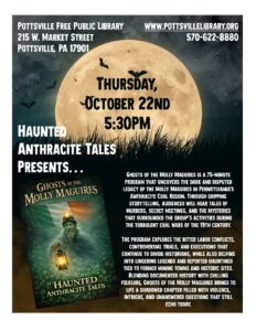 Join us for a free program presented by Haunted Anthracite Tales discussing the Ghosts of the Molly Maguires! Program will be on Thursday, October 22nd, at 5:30PM.