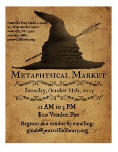 Visit the Pottsville Free Public Library for a magical day of unique vendor shopping, tarot readings, a used book sale and a delicious lunch spot. The historic Library building will be transformed into a showcase of magic & whimsy from 11-3 on Saturday, October 11th. Come out to support local arts!