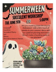 Are you counting down the days until Halloween? Are you more ghouly than girly? This is the program for you! In our Summerween Succulent Workshop we will first be creating a decorative haunted house as the centerpiece for our cauldron. Once completed, we will plant a succulent garden surrounding the haunted house. All supplies including cauldron, soil, succulents, haunted house, decorative stones, gloves, and other small decorations will be included in price.