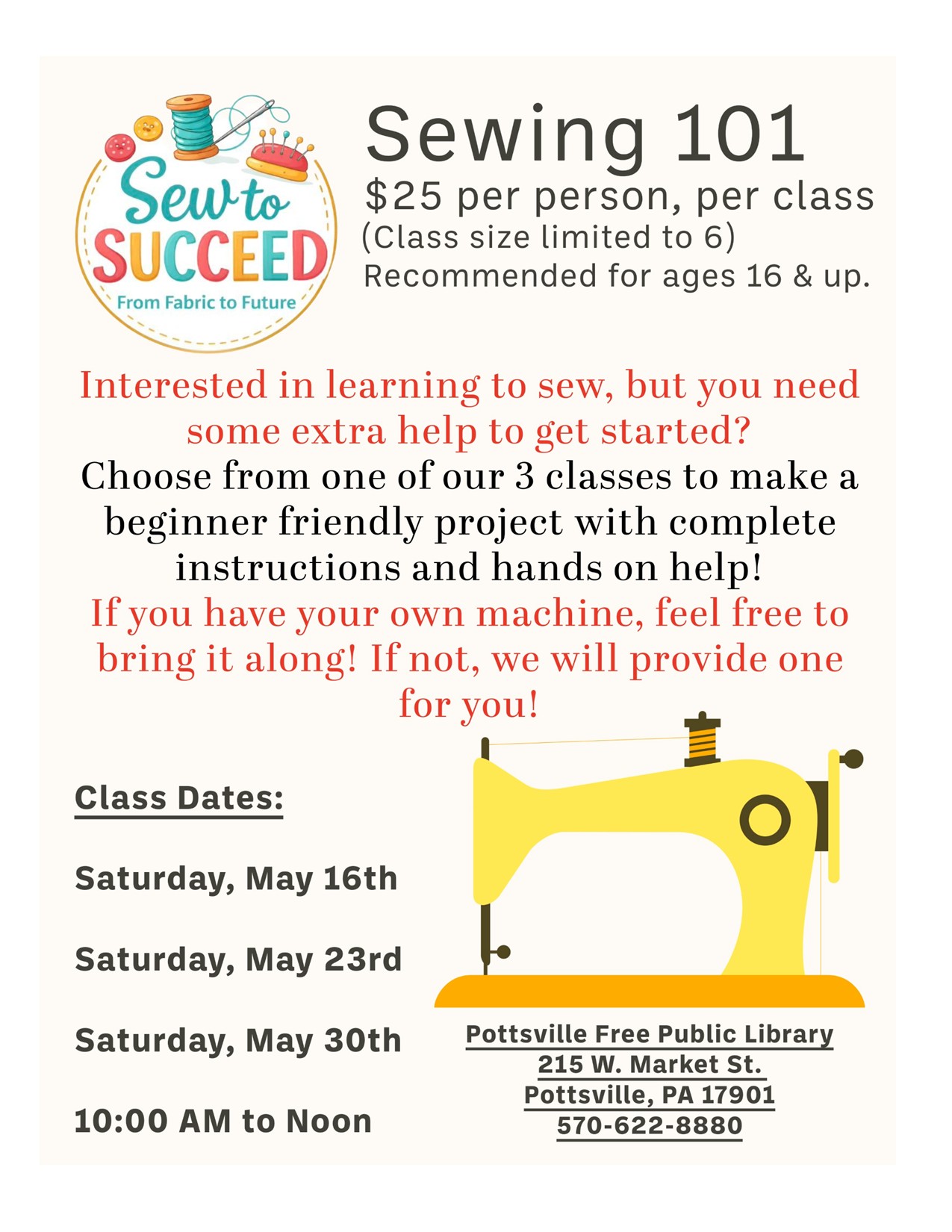 Join us at the Pottsville Free Public Library for three Tuesdays in May (5th, 12th and 19th) at 4 to learn and celebrate the stages of life of butterflies. Observe as they change, do crafts and activities about each stage of their lives, and learn other things about these wonderful parts of our ecosystem. Registrations […]